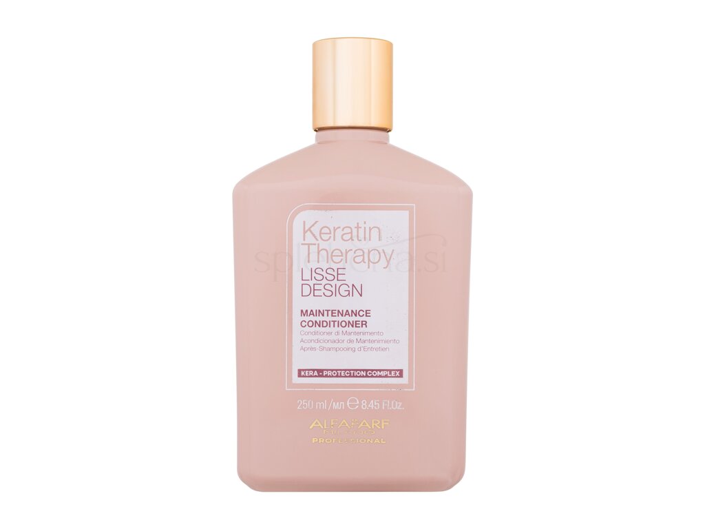 ALFAPARF MILANO Keratin Therapy Lisse Design Conditioner je s keratinom bogat terapevtski balzam za vse tipe las. Formula brez soli, sulfatov, parabenov in drugih škodljivih sestavin združuje hidrolizirani keratin in kvaterniziran kolagen z dragocenim mehčalcem, oljem babassu. Lasje ostanejo mehki in voljni z izboljšanim sijajem in vodljivostjo.