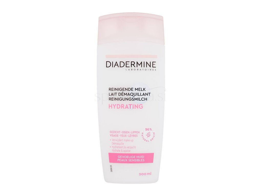 Diadermine Hydrating Cleansing Milk je vlažilno čistilno mleko, ki nežno odstrani ličila z obraza, oči in ustnic ter pusti kožo pomirjeno, mehko in navlaženo.