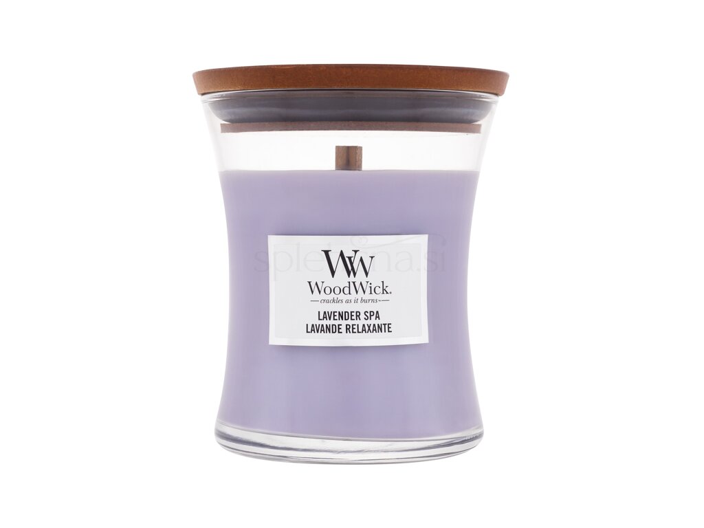 WoodWick Lavender Spa dišeča sveča, izdelana iz mešanice vrhunskega parafina in sojinega voska z visoko koncentriranimi vonji. Vsebuje skrbno izbrane dišeče esence za dolgotrajen vonj.