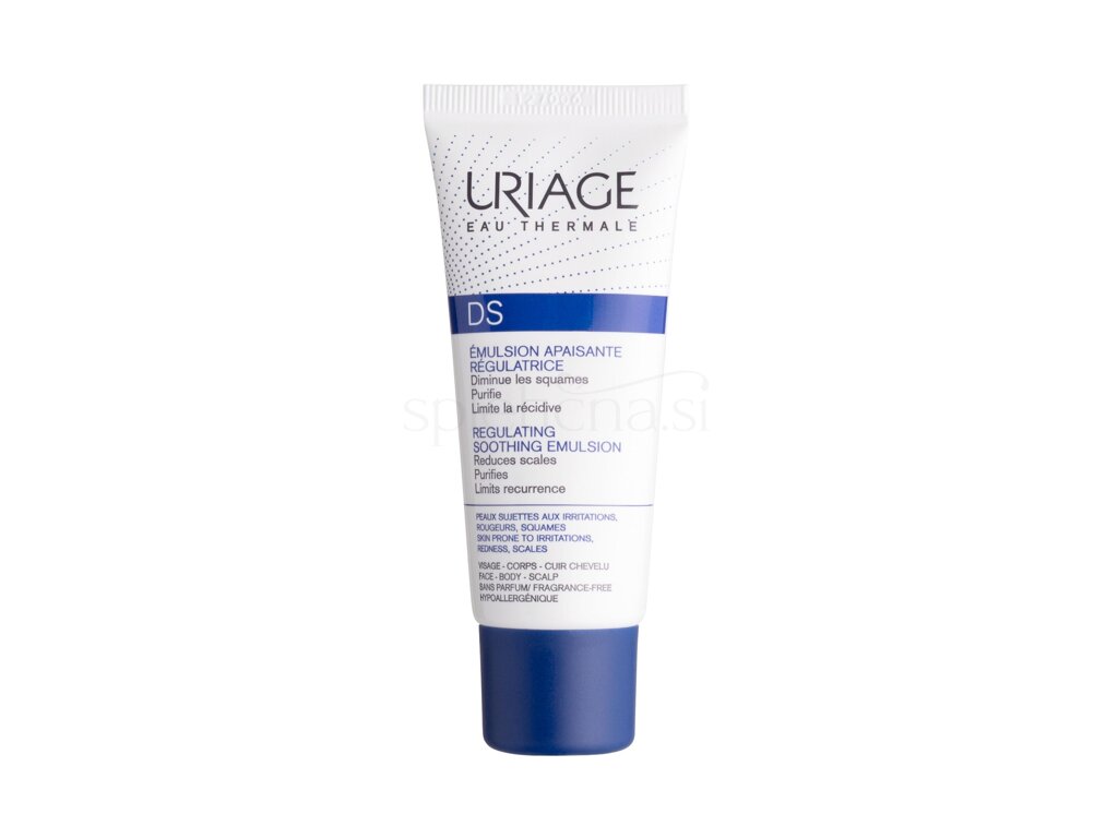 Uriage DS Regulating Soothing Emulsion je pomirjujoč losjon, posebej oblikovan za zmanjšanje draženja, rdečice in luščenja na vseh tipih kože, vključno z občutljivo.