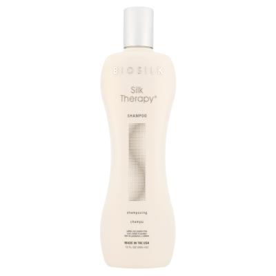 Farouk Systems Biosilk Silk Therapy je obnavljajoč svileni šampon za vse tipe las, zlasti za poškodovane, ki so pogosto kemično obdelani. Lase nežno očisti, okrepi in jim povrne sijaj. Vsebuje svilene beljakovine, rastlinske izvlečke in vitamine. Šampon bogato vlaž lase, jim daje volumen, ščiti pred škodljivimi vplivi UV žarkov in visokih temperatur.