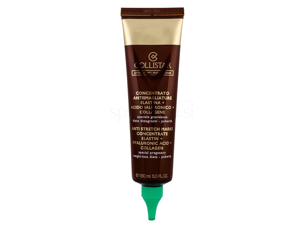 Collistar Pure Actives Anti Stretch Marks Concentrate je izdelek proti celulitu in strijam. Zahvaljujoč trem pomembnim komponentam, kot so elastin, hialuronska kislina in kolagen, serum kožo intenzivno okrepi. Olje sladkega mandlja, karitejevo maslo in jojobin vosek koži dajejo potrebno prehrano, zmanjšujejo stare brazgotine in majhne strije ter pomagajo pri preprečevanju nastajanja novih. Serum se zlahka razmaže in hitro absorbira. Primeren je za vse starosti in vse tipe kože. Serum se uporablja za preprečevanje in zmanjševanje strij na najbolj obremenjenih območjih, kot so boki, stegna, zadnjica, trebuh in prsi. Z redno uporabo Pure Actives Anti Stretch Marks koncentrata bo vaša koža gladka, čvrsta in popolna na pogled.