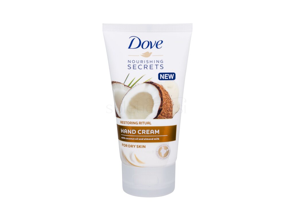 Krema za roke Dove Nourishing Secrets Restoring Ritual učinkovito hidrira suho kožo rok. Sestava, obogatena s kokosovim oljem in mandljevim mlekom, vrača koži izgubljeno hidracijo. Krema se hitro vpije in na koži ne pušča mastnega filma. Z Nourishing Secret Restoring Ritual bodo vaše roke hidrirane, mehke in lepo dišeče.