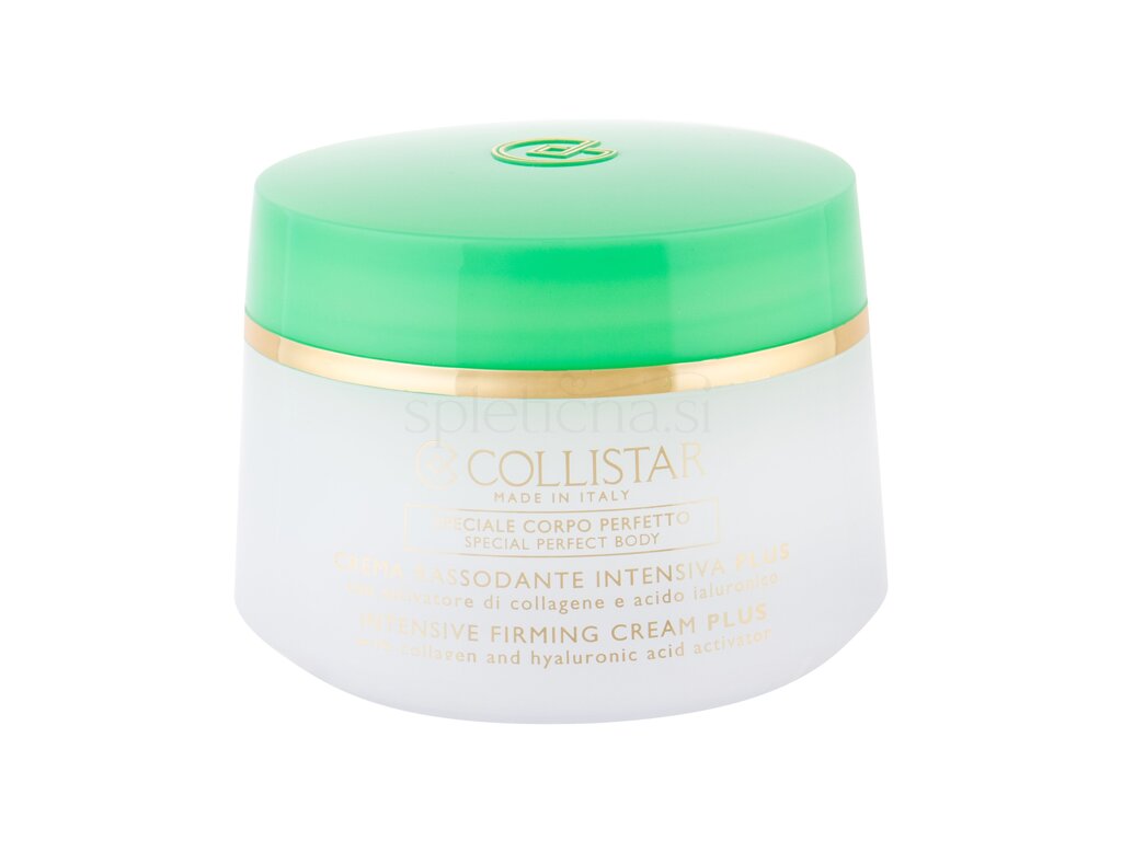 Collistar Intensive Firming Cream učvrstitvena krema za učinkovito in nežno nego telesa. Je enostavna za uporabo in se hitro absorbira. Vsebuje več pomembnih sestavin: olivno olje, beljakovine pšeničnih kalčkov, hialuronsko kislino, vitamin E, rastlinski elastin, preslico in kreatin. Te učinkovine kožo ščitijo, krepijo in hranijo ter zagotavljajo globoko hidratacijo.