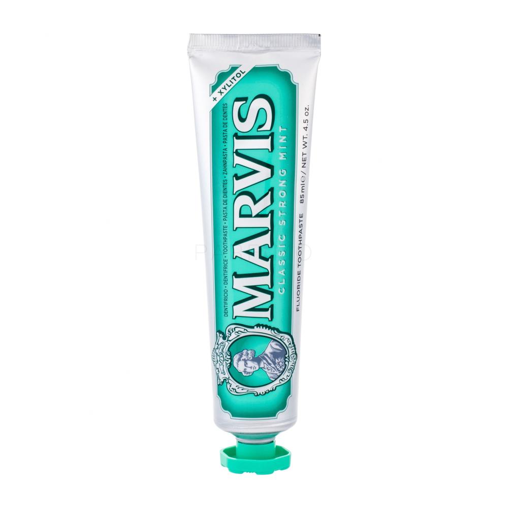 Marvis Classic Strong Mint je osvežilna kremasta zobna z močnim osvežilnim okusom mete, ki beli in ščiti zobe, hkrati pa osvežuje zadah. Zobna pasta ohranja zdravje zob in dlesni, hkrati pa preprečuje gnilobo, saj uporablja nežno formulo na osnovi ksilitola in sorbitana za čiščenje in nego zob brez draženj. Omogoči razkošno in sodobno ustno higieno.