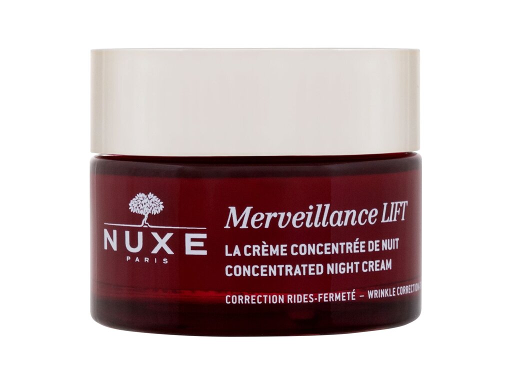 NUXE Merveillance Lift Concentrated Night Cream je nočna učvrstitvena krema, primerna za zrelejšo kožo. Formula, obogatena s 97 % naravnimi sestavinami, deluje proti gubam in učvrsti kožo, hkrati pa krepi bariero kože, tako da je bolj navlažena in obnovljena.