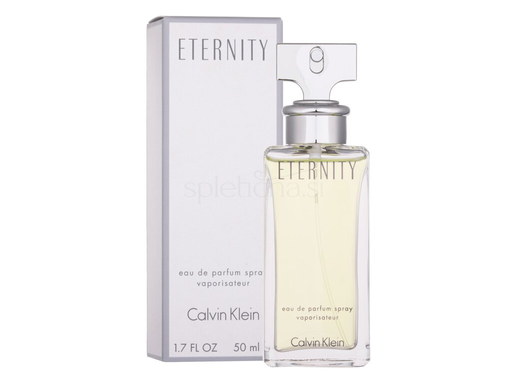 Romantičen šopek nežnih rastlinskih motivov, pomešanih z vonji lesa in zelenimi toni. H kreaciji dišave Eternity for Women je Calvina Kleina navdahnil njegov zakon z asistentko Kelly Rector. Da bi proslavil to zvezo, je Calvin Kelly podaril zaročni prstan, ki je bil prvotno dar vojvode Windsorskega za njegovo ljubljeno kneginjo. Na preprostem prstanu, pokritem z diamanti je bila vgravirana ena sama beseda – ETERNITY – večnost – idealen simbol trajne ljubezni in predanosti. Zdaj ta ideja živi naprej v romantični dišavi Eternity.