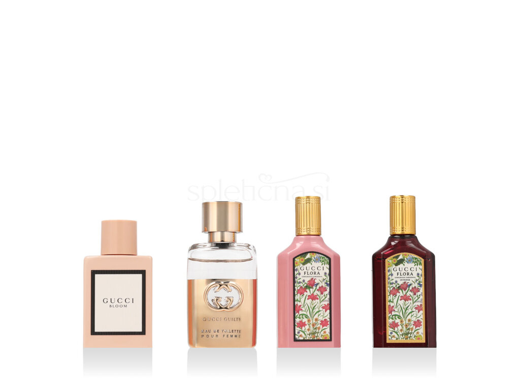 parfumska voda Bloom 5 ml + parfumska voda Flora Gorgeous Gardenia 5 ml + parfumska voda Flora Gorgeous Gardenia Intense 5 ml + toaletna voda Guilty Pour Femme 5 ml