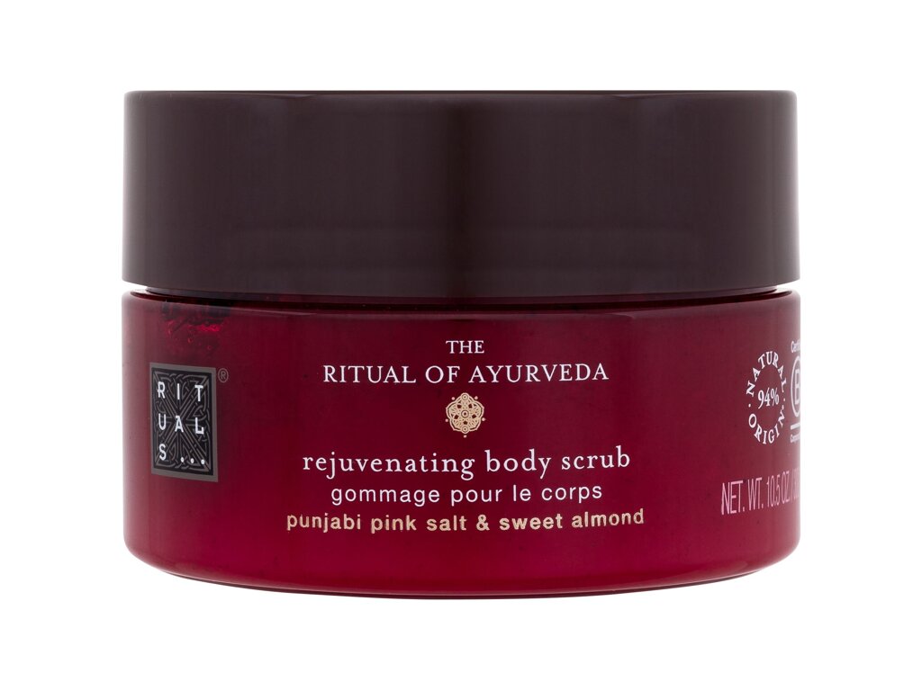 Rituals The Ritual Of Ayurveda Rejuvenating Body Scrub je piling za telo iz 94 % naravnih sestavin s pomlajevalnim učinkom, ki vsebuje skrbno formulirano osnovno mešanico bogatih olj in pandžabske rožnate soli.