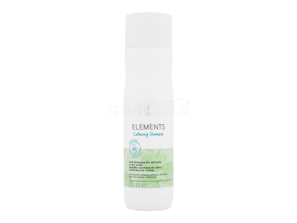 Wella Professionals Elements Calming Shampoo je blag šampon, sestavljen iz 92 % sestavin naravnega izvora. Njegove pomirjujoče površinsko aktivne snovi nežno očistijo lase in lasišče. Ključna sestavina je rastlinski glicerin, ki pomaga obnoviti udobje lasišča.