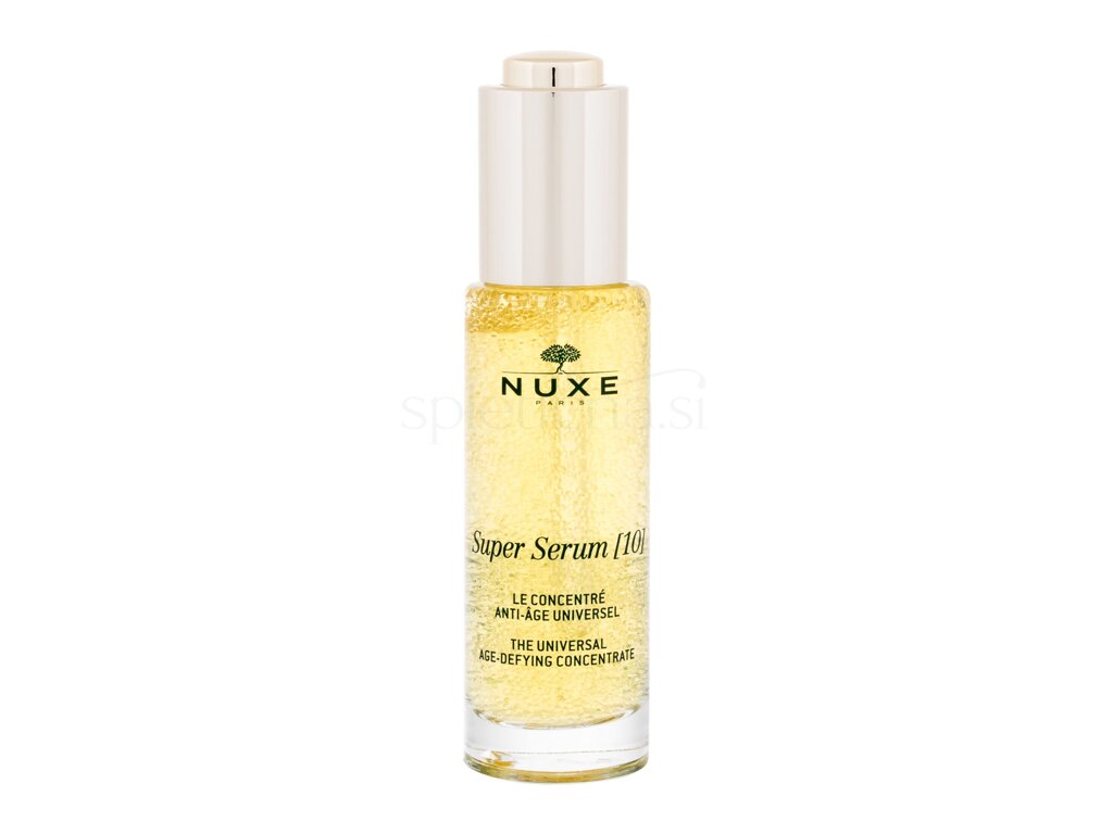 NUXE Super Serum[10] je serum z naravno hialuronsko kislino in tisoče mikrokroglic frakcioniranih rastlinskih olj, ki je nastal z združitvijo strokovnega znanja Laboratorija NUXE za rastlinska olja in nego proti staranju. Spodbuja mladostne mehanizme kože za izjemno učinkovitost proti staranju. Koža se obnaša, kot da je 10 let mlajša in je že od prvih kapljic spremenjena: zglajena, zapolnjena in sijoča.