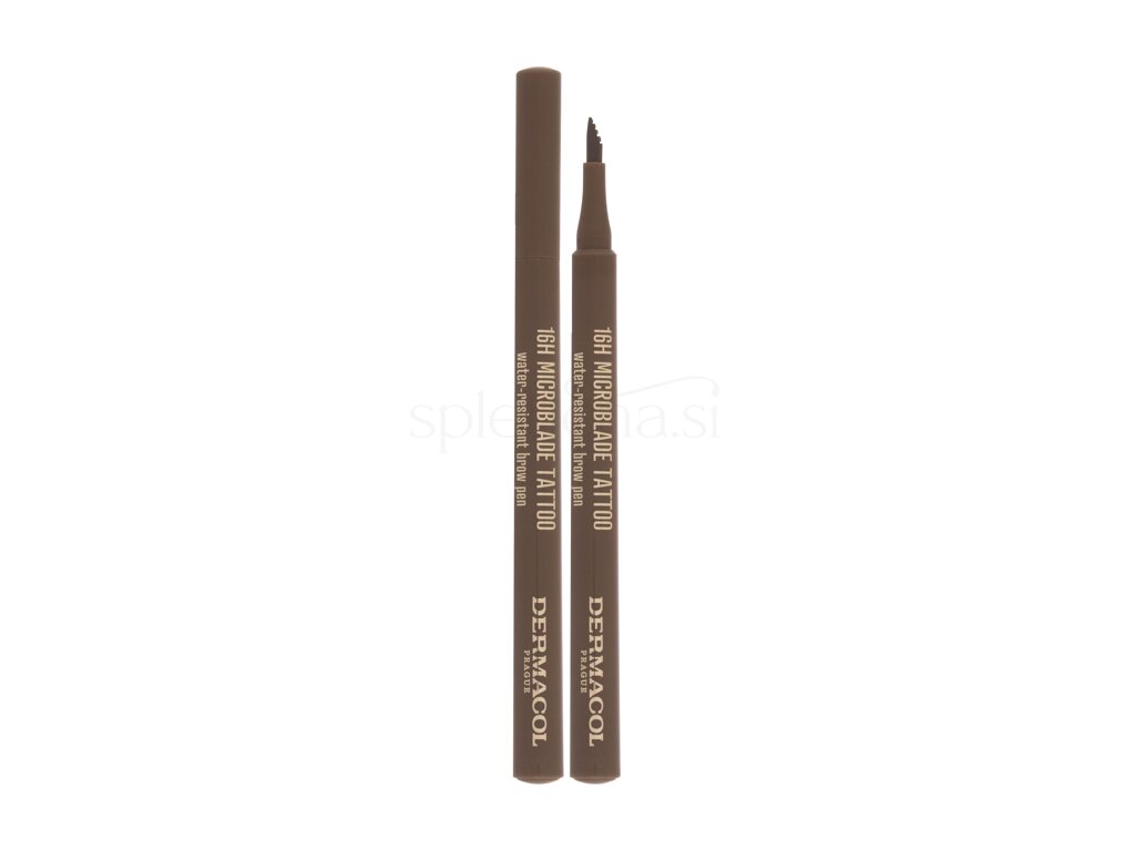 Dermacol 16H Microblade Tattoo je svinčnik za obrvi v obliki glavnika, ki omogoča natančno in nežno nanašanje narisanih in naravnega videza obrvi. Simulira domačo nego salonskega mikrobladinga in ustvari iluzijo gostih obrvi. Dolgo obstojna vodoodporna barva, odporna na odrgnine, obstojna do 16 ur.