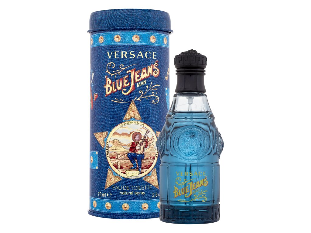 Presenetljiva, neposredna, čista in moška svežina je skrita v moško dišavo Versace Jeans Blue****. K utelešenju te dišave so pripomogli citrusi, zeleni galbanum in brin z edinstvenim dotikom vrtnice in pelargonije. Dalje jo poudarja dišava sivke, cvetovi jasmina in vijolice pa dišavi Blue Jeans dajejo pridih nekonvencionalnosti. To nenavadno harmonijo ovijajo topli toni vanilje, mošusa in jantarja. Versace Blue Jeansje orientalski parfum, ki je bil na trgu predstavljen leta1994.