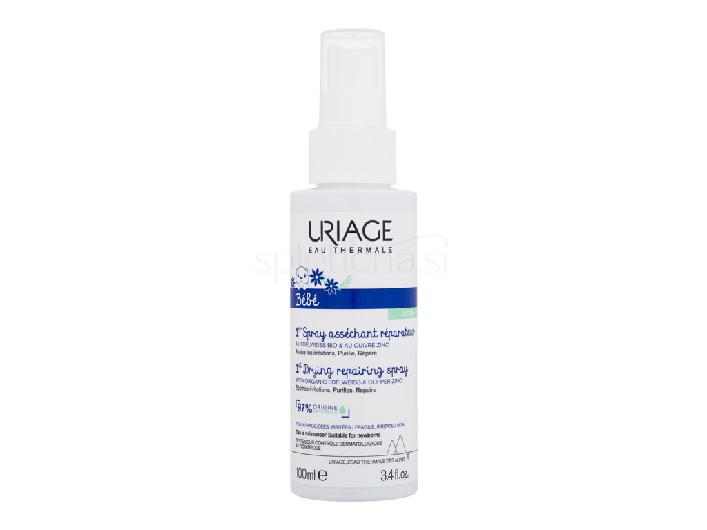 Uriage Bébé 1st Drying Repairing Spray je nevidno pršilo, ki absorbira vlago in popravi razdraženo in macerirano kožo dojenčka.