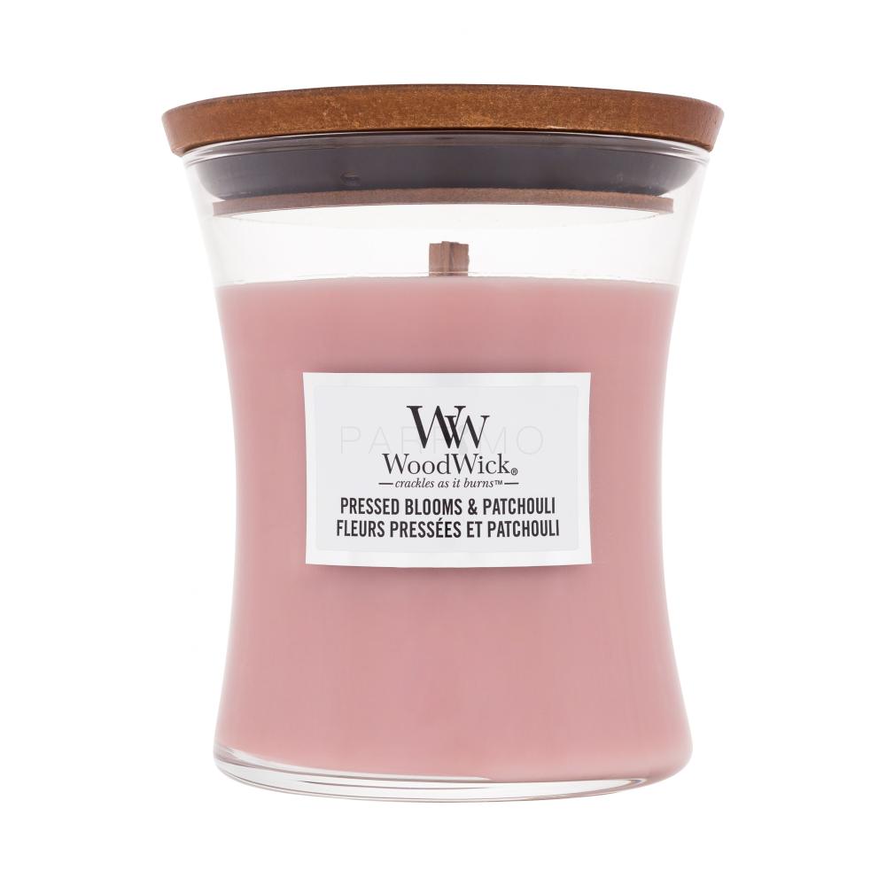WoodWick Pressed Blooms & Patchouli Dišeča svečka 275 g