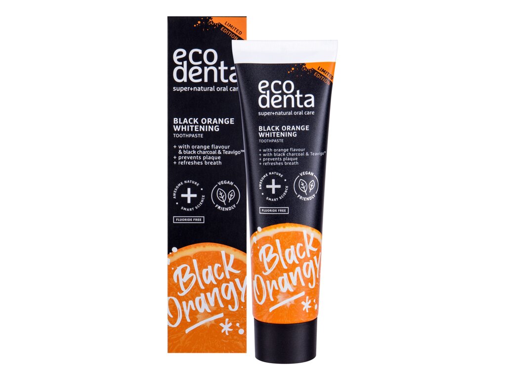 Črna pasta z okusom pomaranče, ki pobeli zobe? Sliši se nenavadno, vendar je povsem res. Zobna pasta Ecodenta Black Orange Whitening s črnim ogljem in drugimi aktivnimi snovmi bo poskrbela za nežno beljenje vaših zob.